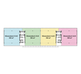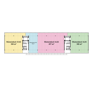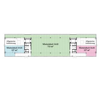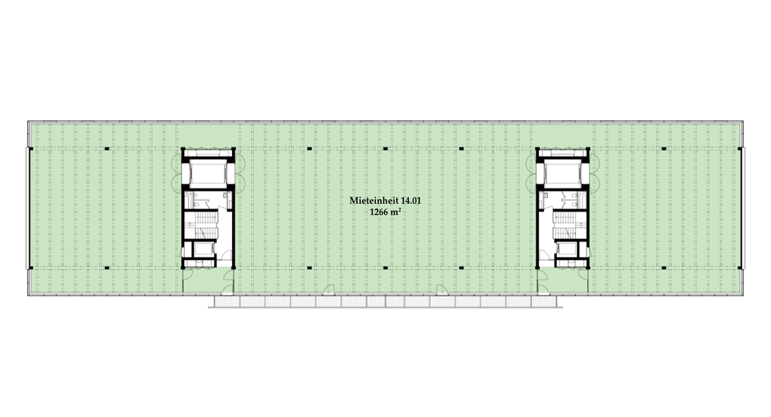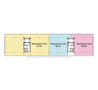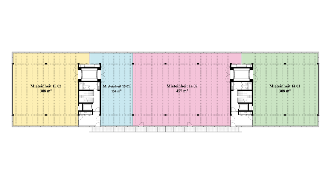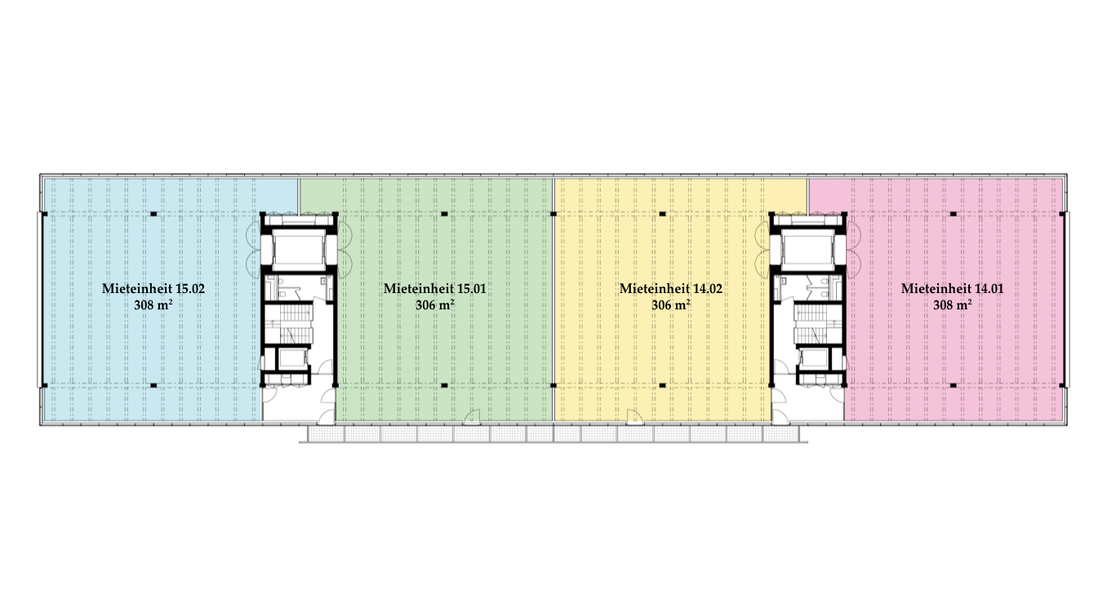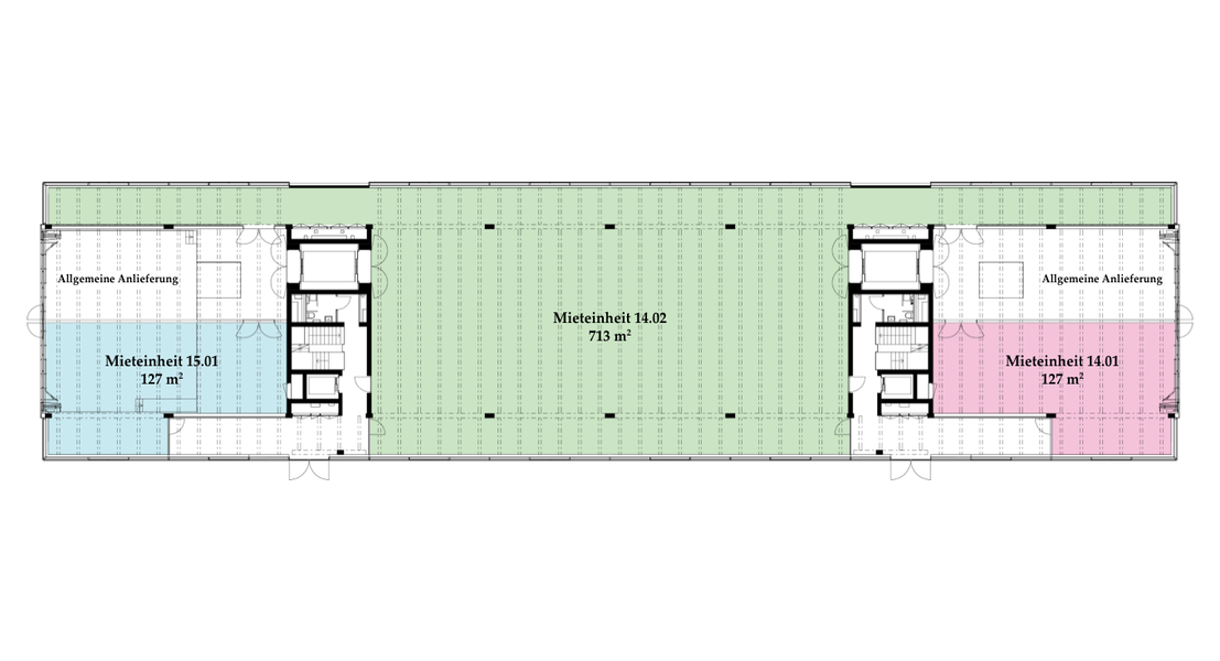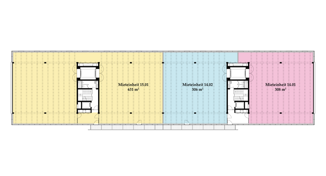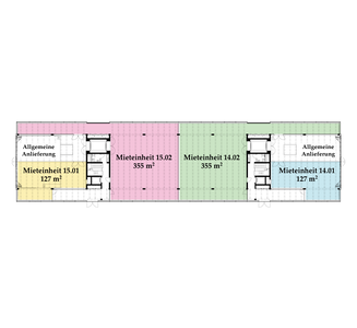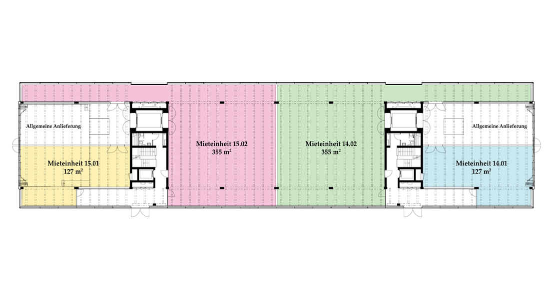 Die Räume bestehen aus voll ausgebauten Allgemeinflächen – inkl. Toiletten – sowie abgetrennten Mietflächen. Diese werden im Grundausbau angeboten: Auf dem Boden kann der gewünschte Belag ausgelegt werden, die Wände sind gestrichen, sämtliche Leitungen an die Mietflächen herangeführt, die Heizung ist betriebsbereit. Alles Weitere gestalten die Mieter:innen individuell nach ihren Bedürfnissen.